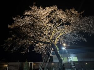 我が社は田舎にあり外灯も少ないのでご近所のおうちから見ると桜がぼんやりと浮かんで見えるみたいです🌸